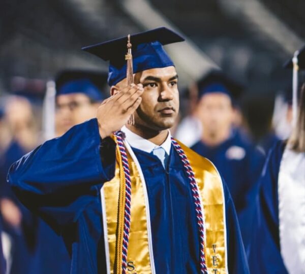 That image — father in dress uniform, son in graduation cap — became the moment many in attendance would remember long after the decorations were taken down.