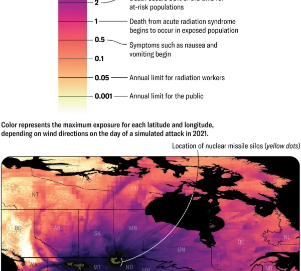 Multiple academic and research institutions have developed models to estimate how radioactive fallout could spread across North America if missile silos or other strategic targets were hit in a nuclear exchange.