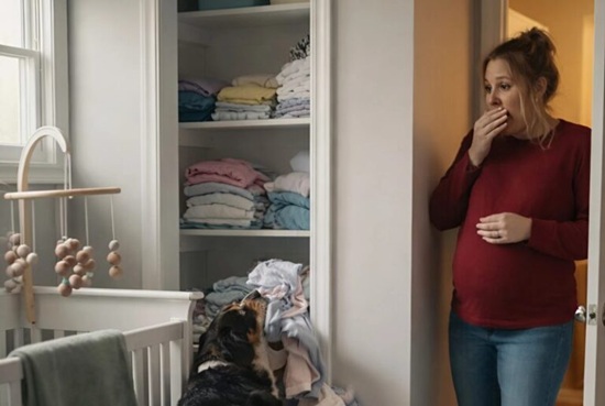 However, that sense of calm was interrupted when the family dog suddenly exhibited a noticeable and unexpected change in behavior within the nursery space.