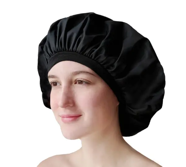 Hair can be left loose under the cap, or lightly braided or tied to prevent tangling overnight.