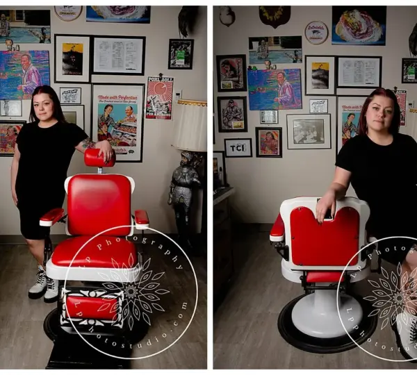 The young woman sat quietly in the barbershop chair, her hands clasped together in her lap, knuckles whitening under the pressure.