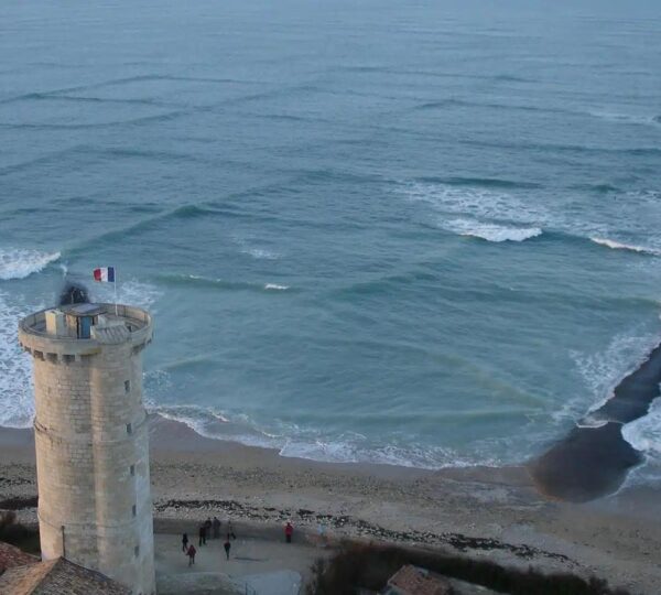 Along France’s Île de Ré, the western coastline is known for visible cross seas during certain weather conditions. Tourists can enjoy watching this phenomenon from the safety of the beach, appreciating its beauty without facing danger.
